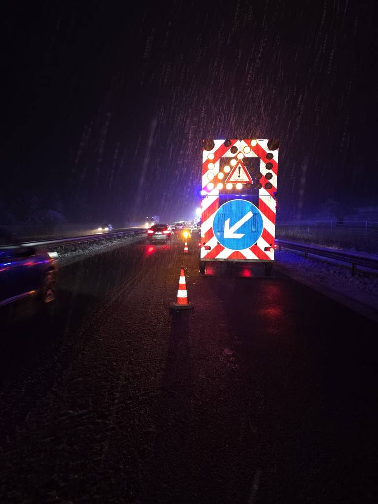 Von Montag, den 23. Februar bis Donnerstag, den 26. Februar werden in beiden Fahrtrichtungen Hilfsstützen für das Traggerüst aufgebaut. Dazu müssen zeitweise Fahrstreifen gesperrt werden. In Fahrtrichtung Salzburg erfolgen die Fahrstreifensperrungen in der Zeit von 7:30 Uhr bis 16:00 Uhr und in Fahrtrichtung München in der Zeit von 9:00 Uhr bis 17:00 Uhr. Es steht immer mindestens ein Fahrstreifen in jeder Fahrtrichtung zur Verfügung.