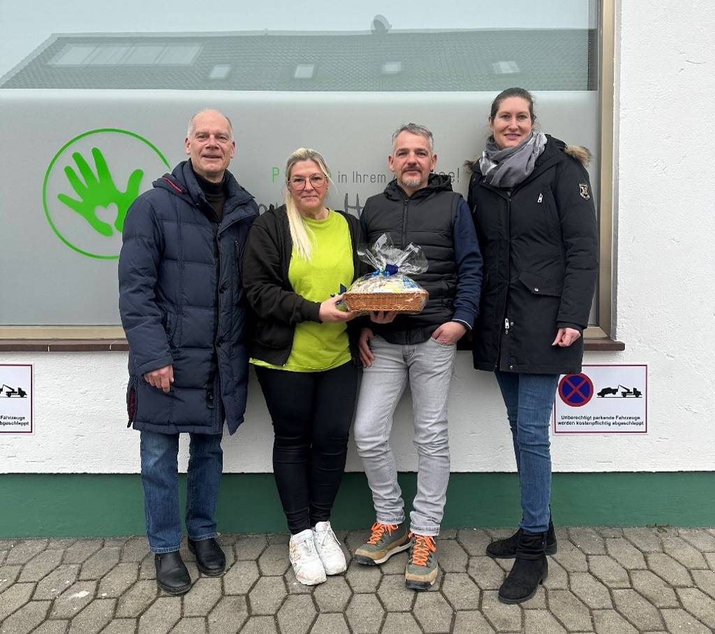 Bürgermeisterin Irene Biebl-Daiber und Wirtschaftsreferent Sascha Klein haben den Pflegedienst „Hand aufs Herz“ von Nadine Praßberger und Enrico Böhmer in ihren neuen Räumen besucht. Das engagierte Team mit rund 25 Mitarbeiterinnen und Mitarbeitern betreut derzeit etwa 200 Patientinnen und Patienten – bis hinein ins Achtental.