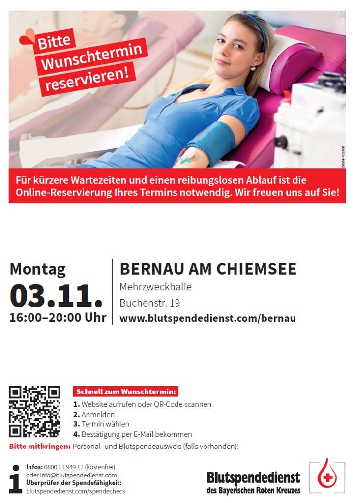 Wunschtermine können unter www.blutspendedienst.com/bernau online reserviert werden.