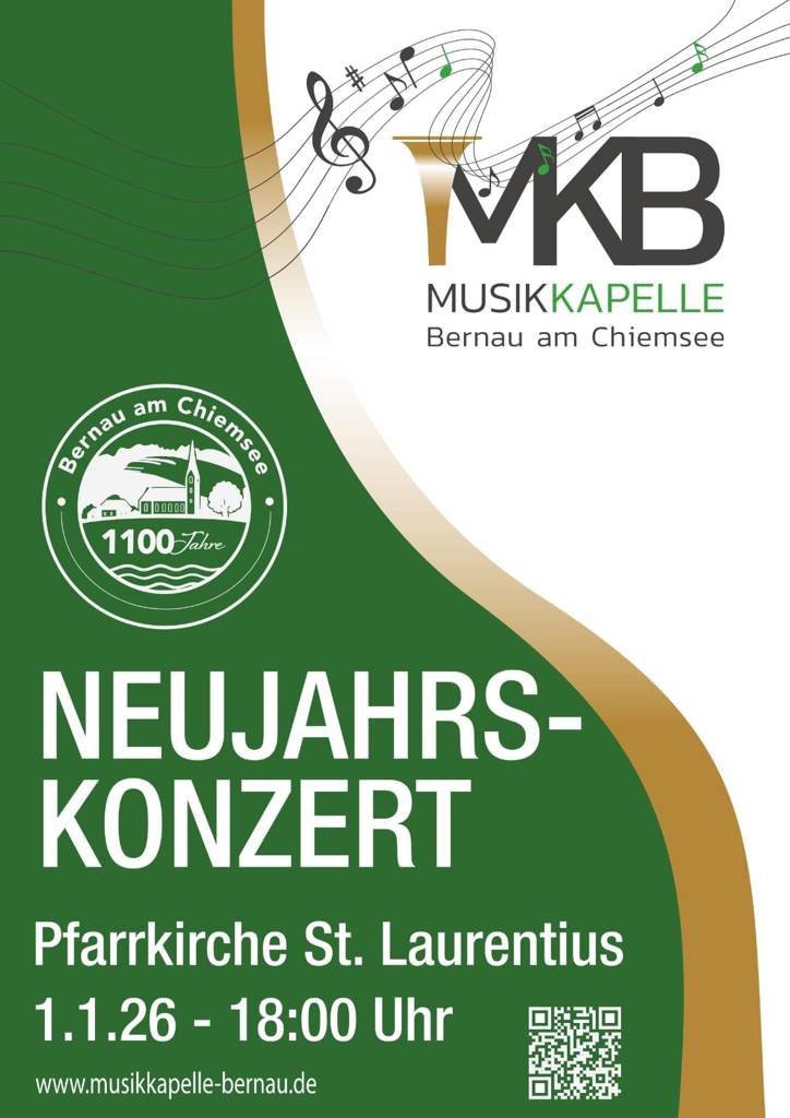 Mit einem festlichen Neujahrskonzert eröffnet die Musikkapelle Bernau am Chiemsee das Jubiläumsjahr „1100 Jahre Bernau“.
