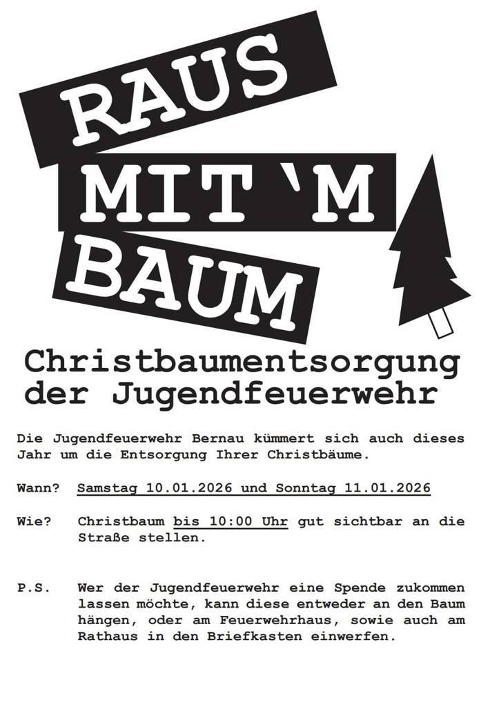 am Ende dieses Jahres möchte ich mich von Herzen bei all jenen bedanken, die sich mit viel Engagement und Leidenschaft für unsere Gemeinde einsetzen. Ob in Vereinen, bei Veranstaltungen oder im nachbarschaftlichen Miteinander – Ihr Einsatz macht Bernau lebendig und trägt wesentlich zu unserem starken Zusammenhalt bei. Dafür sage ich herzlich Danke!