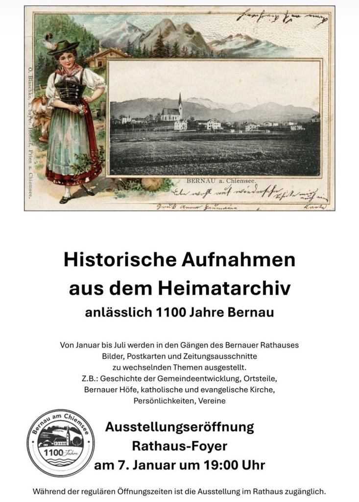 ein neues Jahr steht uns bevor – 2026 ist für unsere Gemeinde ein ganz besonderes Jahr: Bernau am Chiemsee feiert sein 1100-jähriges Jubiläum. Auf diese lange, bewegte und zugleich lebendige Geschichte dürfen wir voller Stolz und Dankbarkeit blicken.