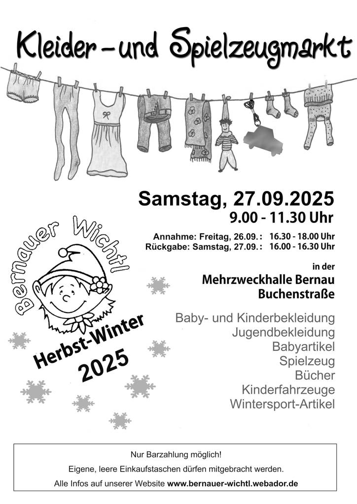 Von 9-11:30 Uhr gibt es in der Mehrzweckhalle unzählige Schnäppchen an Kinderkleidung, Babyausstattung und Spielsachen!