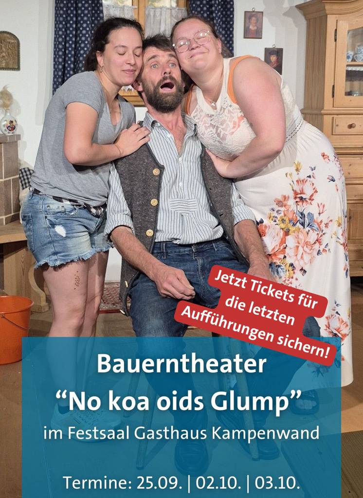Nach vier erfolgreichen Theaterabenden voller Witz, bayerischer Lebensfreude und liebenswerten Charakteren geht das Stück „No koa oids Glump“ in die letzte Runde!
